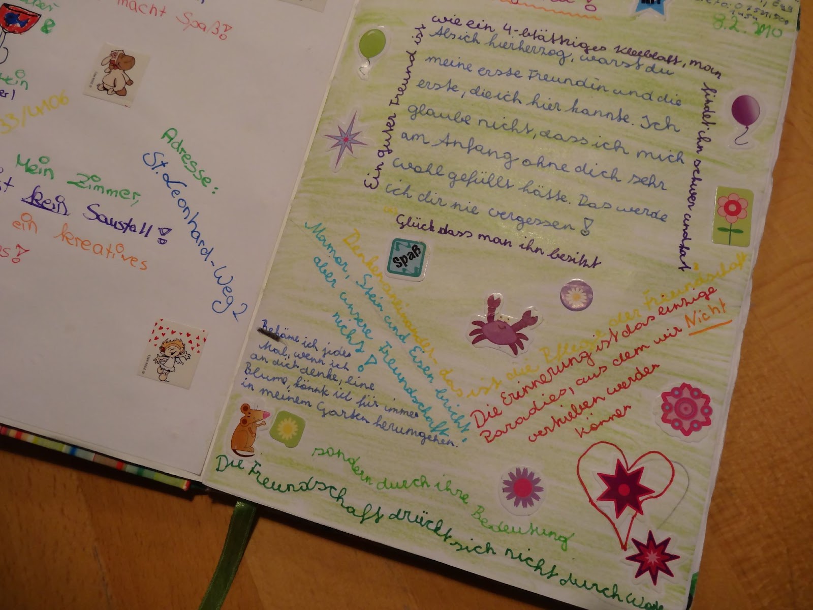 hat sich Nic ein ganz besonders schönes Thema ausgesucht, die Freundschaft. Netterweise hat meine große Tochter mir dafür ihr selbstgemachtes Freundebuch geliehen, in das sie vor drei Jahren ihre engsten Freundinnen hat hineinschreiben lassen. Und es ist so interessant, darin zu blättern und die vielen Freundschaftsbekundungen zu lesen. Waren die Mädels vor drei Jahren noch die dicksten Freundinnen und ein Herz und eine Seele, so ist das inzwischen nicht mehr mit allen so. Das liegt wohl in der Natur der Sache, dass die Pubertät aus verschiedensten Gründen manche enge Freundschaften trennt.