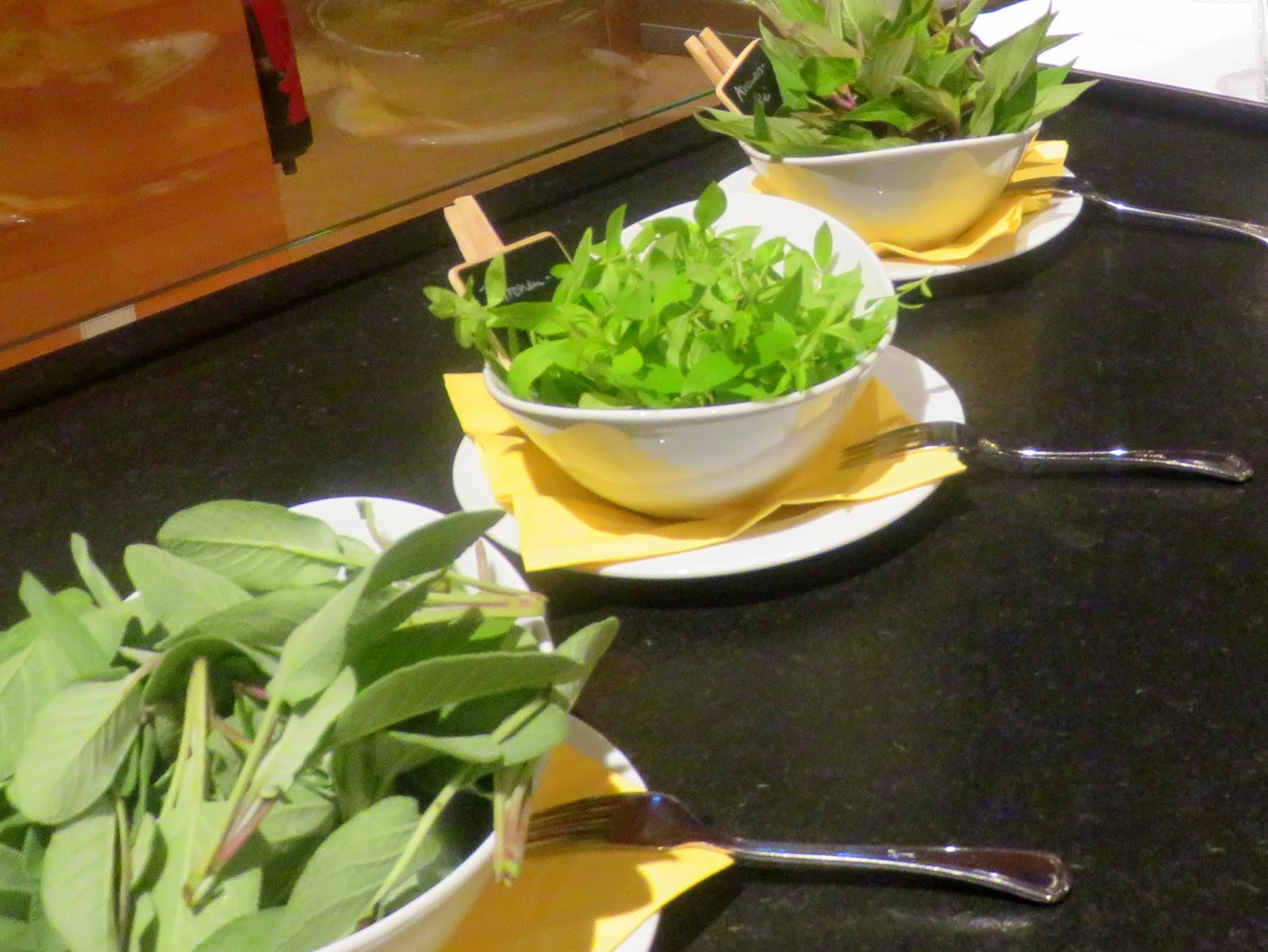 Anschließend gehen wir ins Comturey Restaurant, wo bereits ein einladend gedeckter Tisch und Getränke auf uns warten. Mit heißem Wasser und frischen Kräutern können wir uns auch Tee aufgießen.